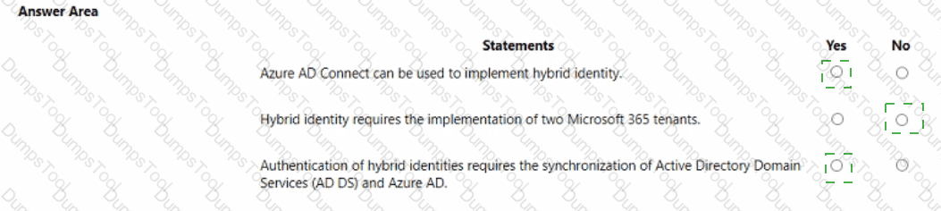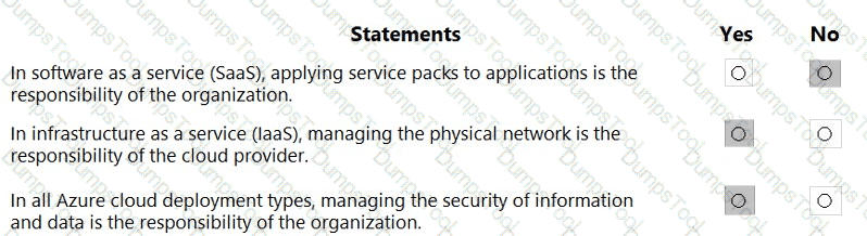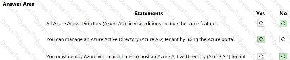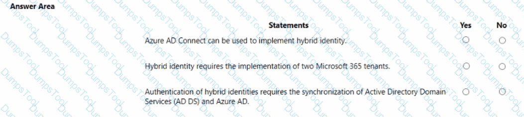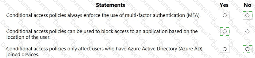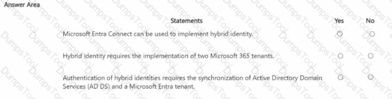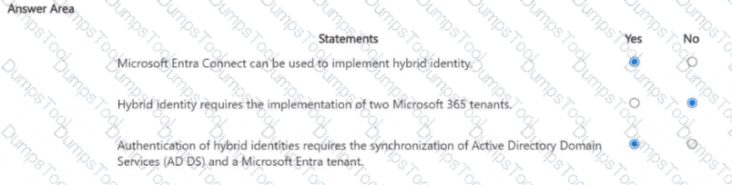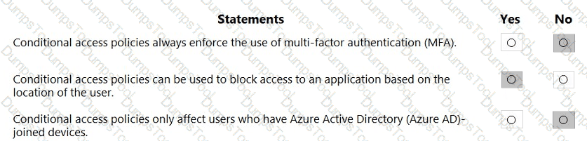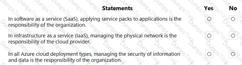 For each of the following statements, select Yes if the statement is true. Otherwise, select No.