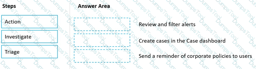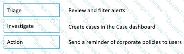 Match the Microsoft 365 insider risk management workflow step to the appropriate task.