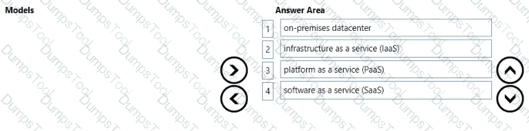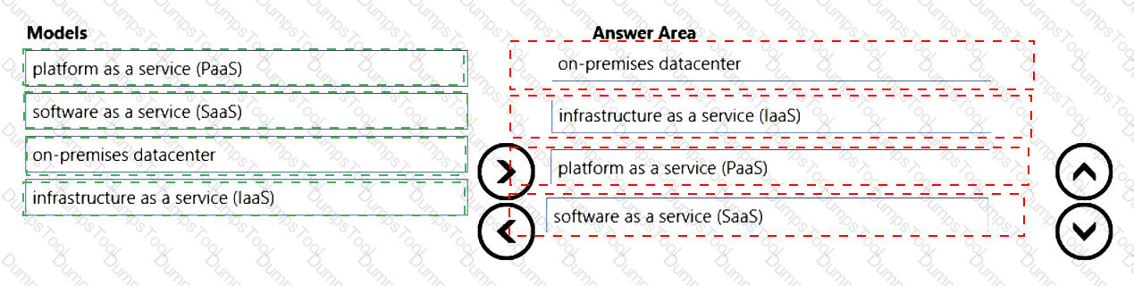 in which order should you list the service models from the most customer responsibility (on the top) to the least customer responsibility (on the bottom)? To answer, move all models from the list of models to the answer area and arrange them in the correct order.