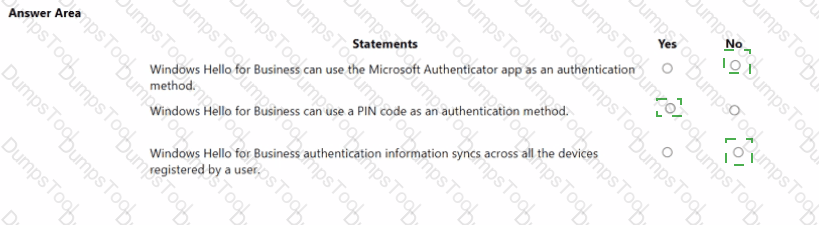 For each of the following statements, select Yes if the statement is true. Otherwise, select No. NOTE: Each correct selection is worth one point.