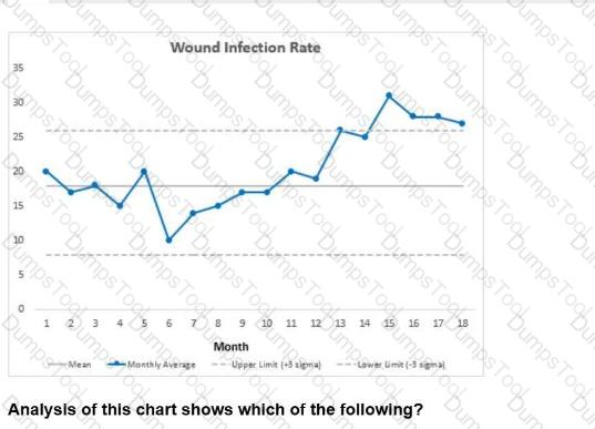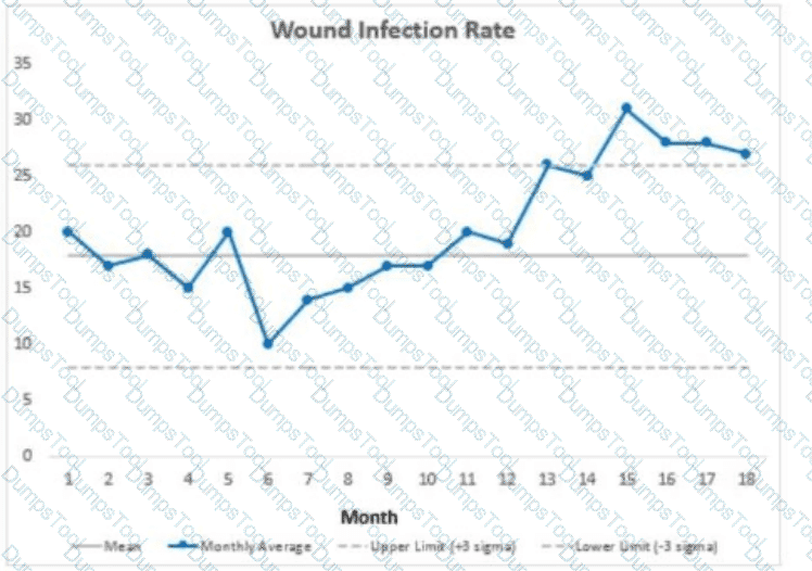 Ahealthcare quality professional has the following data on a hospital's surgical site infection rates: