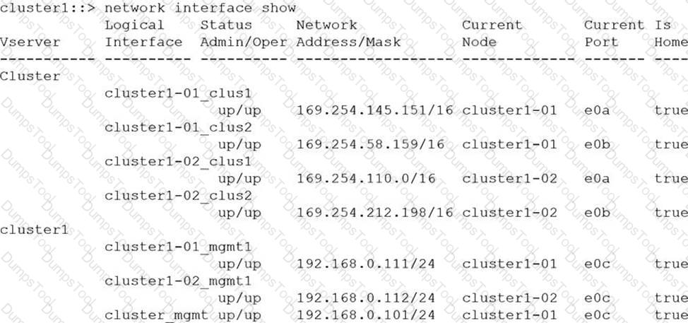 Referring to the exhibit, which IP address would have been used to join node 02 to the cluster during setup?