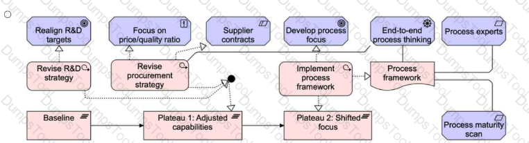The Enterprise Architecture team has identified that the second transition must implement a process framework, in order to shift to a process focus and meet a number of requirements, including the requirement for end-to-end process thinking. As this