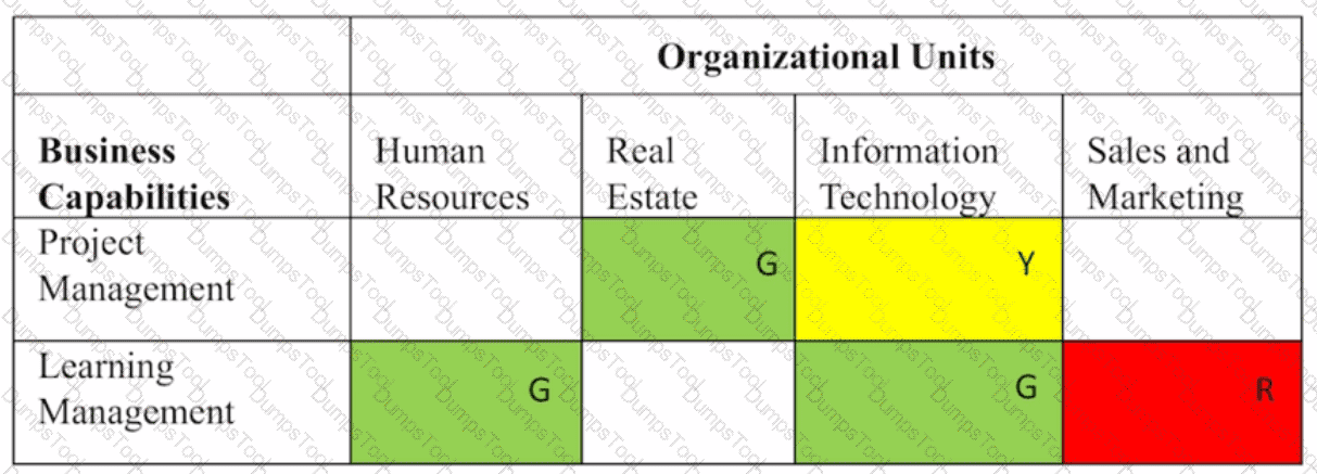 Consider the following modeling example, relating business capabilities to organization units so as to highlight duplication and redundancy: