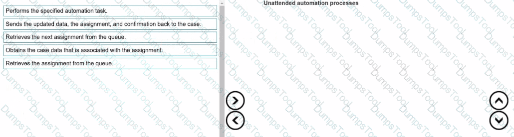 Unattended automations, when run. follow a basic process flow. Arrange the following steps in the order in which unattended automation topic processes a case.