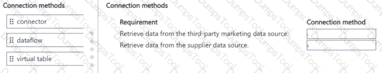 To answer, move the appropriate connection methods to the correct requirements. You may use each connection method once, more than once, or not at all. You may need to move the split bar between panes or scroll to view content.