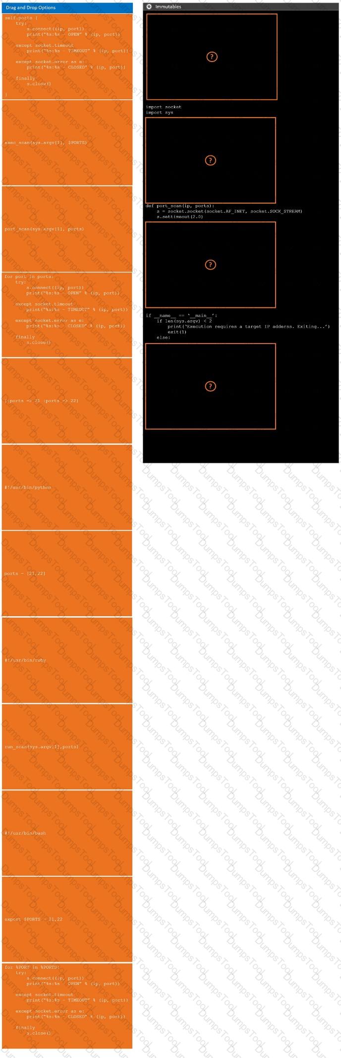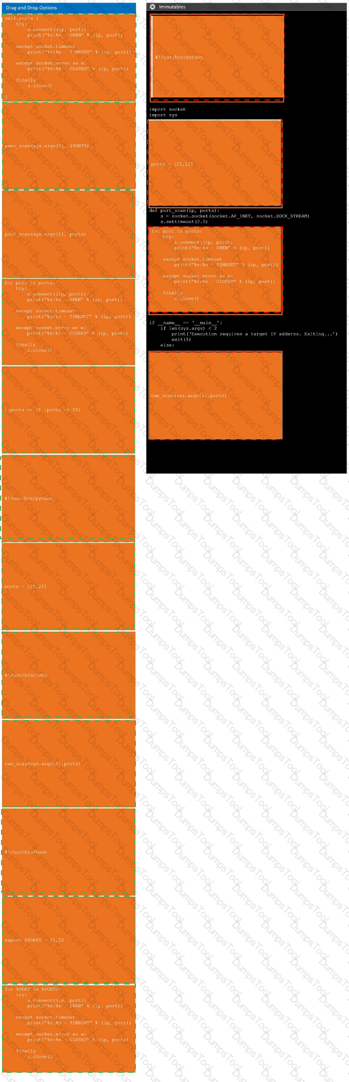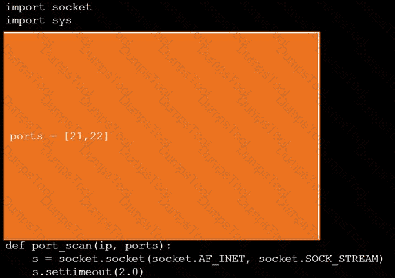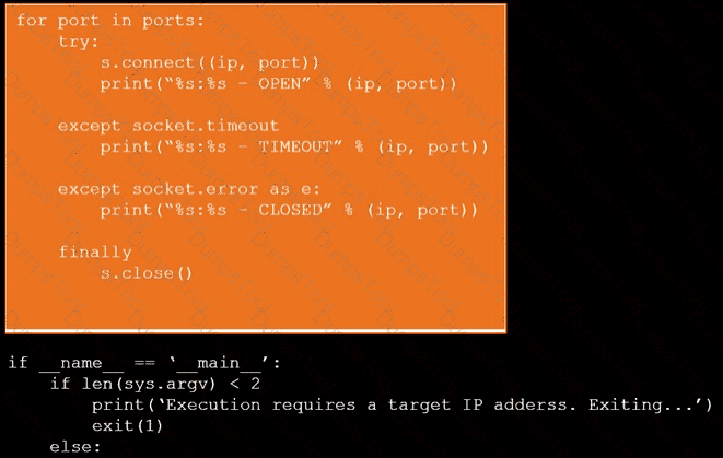 Analyze the code segments to determine which sections are needed to complete a port scanning script.