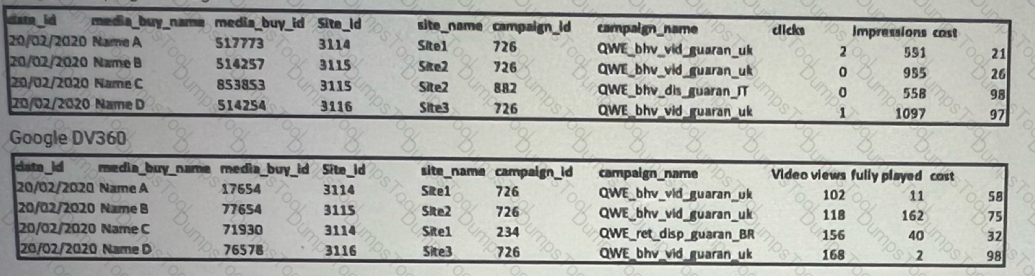 • In addition-to the mutual Media Buys, the sources contain campaign and site values. However, the client would like to see the campaign/site values coming from Google CM and not from Google DV360.