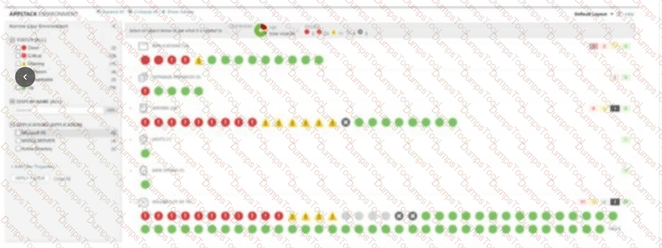 While the view shows storage-related entities like "Volumes," this does not confirm whether theStorage Resource Monitor (SRM) is not installed (C), as basic volume data can often be collected via standard node polling. Additionally, the AppStack interface itself does not provide enough diagnostic data to verify if theuser account is given administrator access rights (D), as these visual elements are accessible to non-admin users with appropriate view permissions. Therefore, A and B are the only verified conclusions based on the visual evidence of the filtered environment.