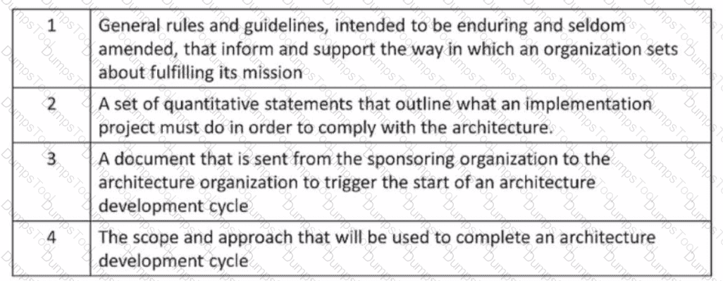 Consider the following descriptions of deliverables consumed and produced across the TOGAF ADM cycle.