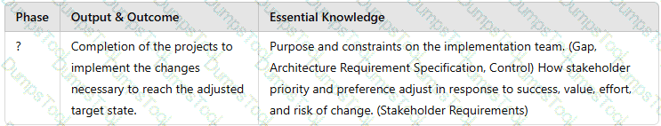 Each division has completed the Architecture Definition documentation to meet its own specific operational requirements. The enterprise architects have analyzed the corporate changes and implementation constraints. A consolidated gap analysis has been completed. Based on its results, the architects have reviewed the requirements, dependencies, and interoperability requirements needed to integrate the cloud-based solution. The architects have completed the Business Transformation Readiness Assessment. Based on all these factors, they have produced a risk assessment. They have also completed the draft Implementation and Migration Plan, the draft Architecture Roadmap, and the Capability Assessment deliverables.