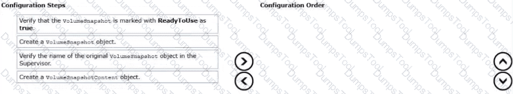Drag and drop the four configuration tasks Into the correct order from "Configuration Steps" on the left and place them into the "Configuration Order" on the right. (Choose four.)