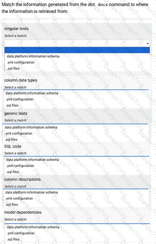 dbt-Analytics-Engineering Question Includes: Single Choice Questions: 38, Multiple Choice Questions: 12, Hotspot: 12, Drag Drop: 3,