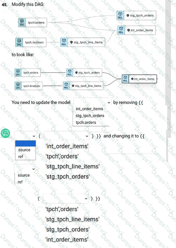Which set of two standard arguments should be used to replace {{ ref('stg_orders') }} and amount_usd? Choose 1 option.